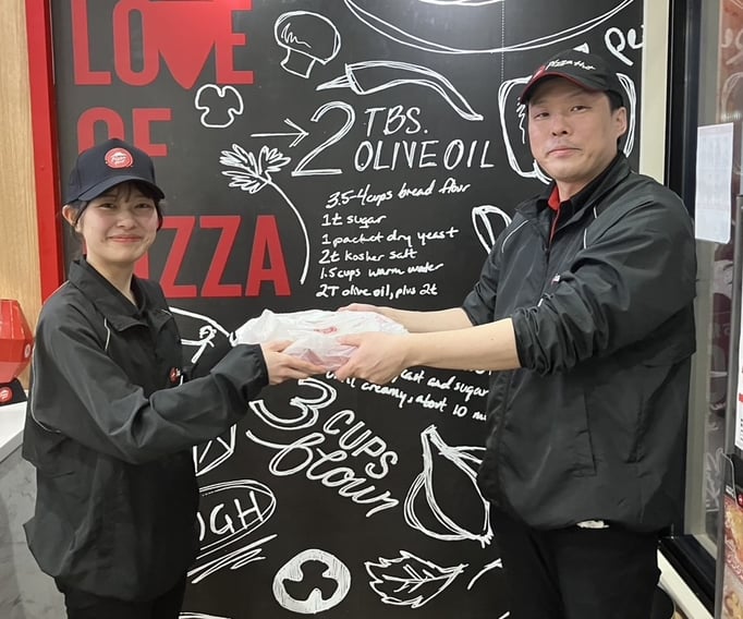 店舗で採用されたアルバイトスタッフが、最初に出勤して仕事をした日に、店長からピザと激励の言葉が送られます。これは、働く店舗でどんな商品が作られているのか、それはどんな味なのかを実際に食べて感じ取ってほしい。さらに、友達や家族にピザハットで働き始めたことを知ってもらい、応援してもらうことも期待してピザをプレゼントしています。